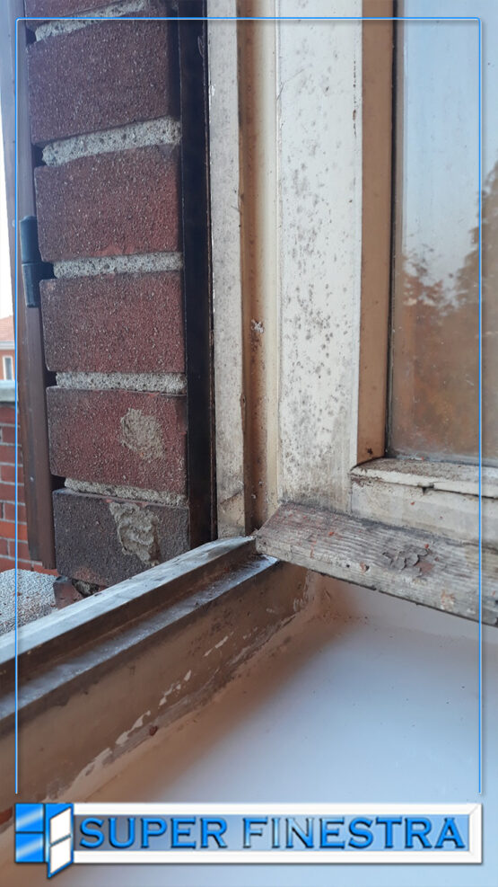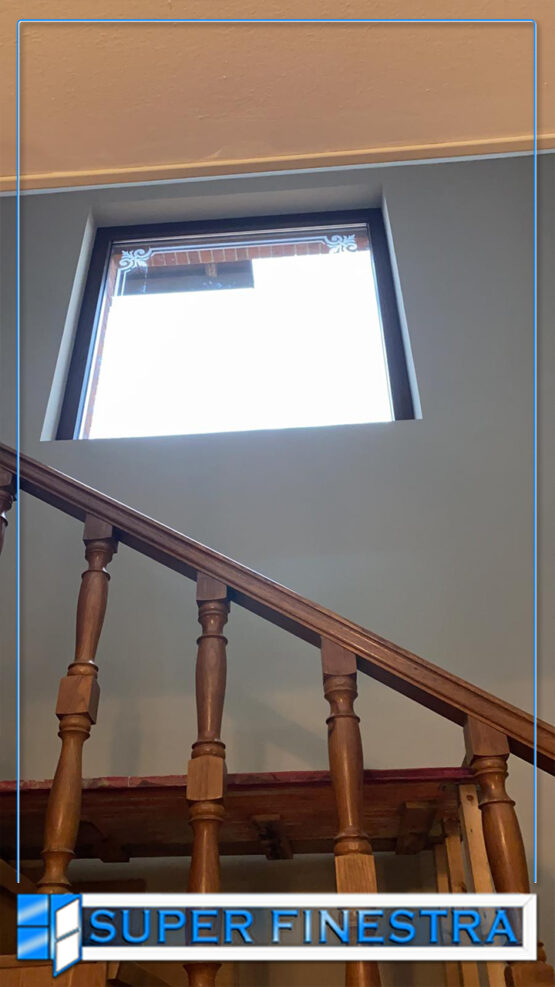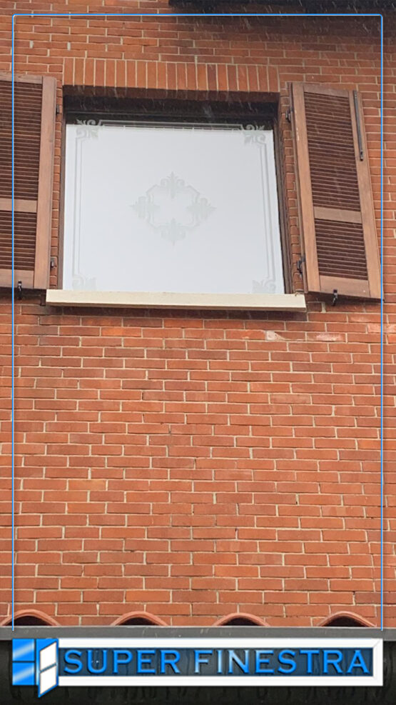 Trasformazione 2 vecchie finestre in legno a 3 ante battenti in FINESTRE FISSE in PVC con profilo MICHELANGELO da 74mm e VETROCAMERA da 36 mm con SERIGRAFIA su disegno del cliente.