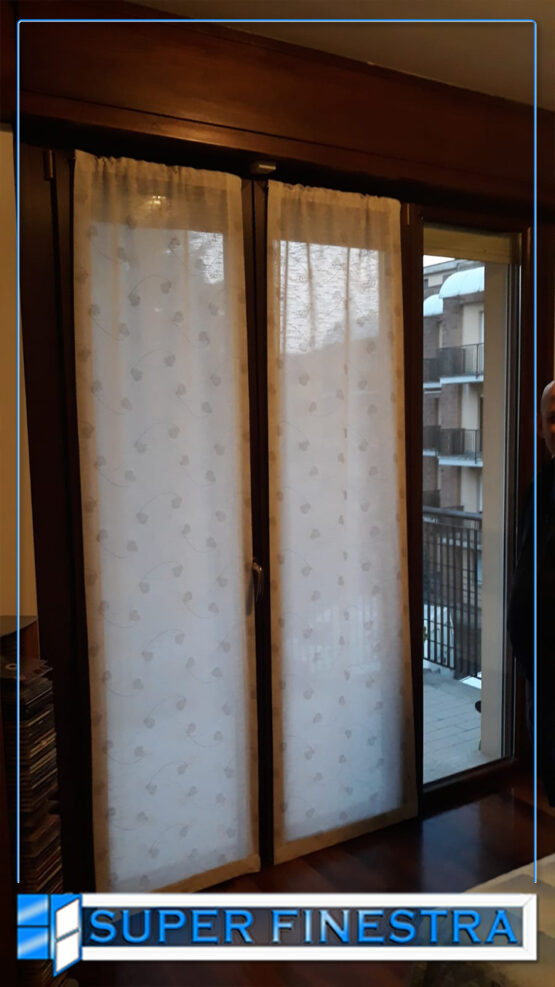 ISTALLAZIONE (compreso servizio di rilievo misure e smaltimento delle veccihe finestre in legno) di 5 finestre realizzate con profilo RAFFAELLO da 82.5 mm color Noce, vetrocamera a TRIPLO VETRO da 50mm con canalina calda, maniglia design “YORK” con finitura Bronzo, soglia di tenuta anti VENTO / ARIA / ACQUA per le porta