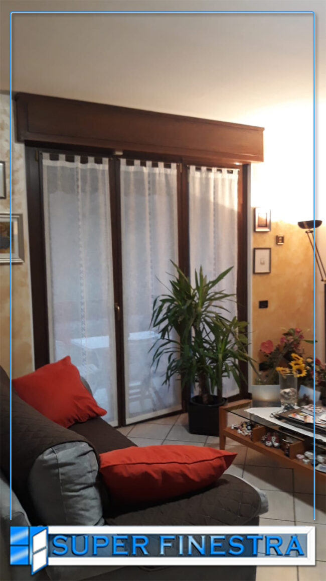 ISTALLAZIONE (compreso servizio di rilievo misure e smaltimento delle veccihe finestre in legno) di 5 finestre realizzate con profilo RAFFAELLO da 82.5 mm color Noce, vetrocamera a TRIPLO VETRO da 50mm con canalina calda, maniglia design “YORK” con finitura Bronzo, soglia di tenuta anti VENTO / ARIA / ACQUA per le porta